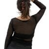 The Black Mesh Top features a sheer mesh design with long sleeves and a gathered detail at the front waist, adding subtle texture and shaping. Its versatile black color and lightweight mesh fabric make it perfect for layering or styling on its own.