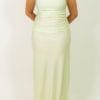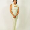 The Lime Cut-Out Dress boasts a bold neck cut-out design and a gathered waist for a figure-enhancing fit. Made from soft, stretchy lycra, this ankle-length dress in vibrant lime hugs your curves while offering a sleek, modern silhouette, perfect for making a stylish statement.