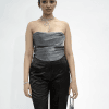 Pair the Metallic Pleated Corset  with our Satin Folded-up Pants and heels for an unforgettable, futuristic look that exudes elegance and allure.