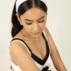 The White Hairband, crafted from sleek Lycra, combines comfort with a stylish edge, offering a seamless fit that enhances your look with a touch of effortless elegance.